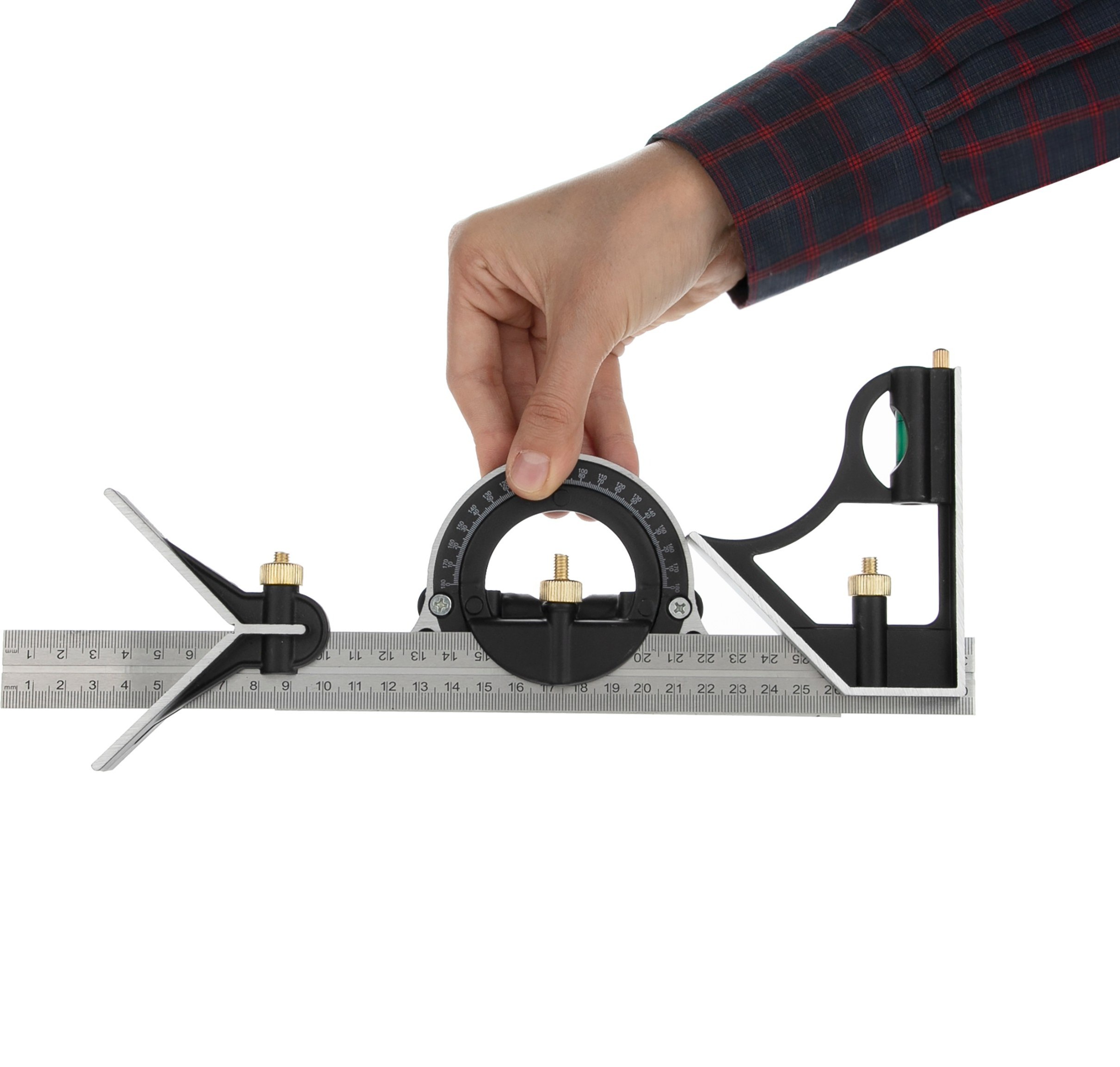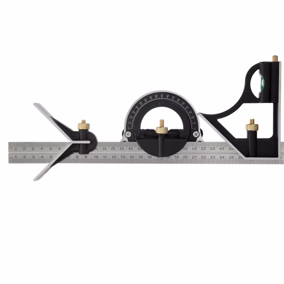 گونیامرکب ابزاری برای اندازه گیری وزاویه زنی،خط کشی زاویه۹۰و۴۵ درجه،به دست آوردن دایره وعمق شیاریاسوراخ،اندازه گیری فاصله های ساده وکوتاه استفاده میشود