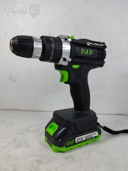 دریل شارژی چکشی PAPبه همراه کیت کامل لوازم جانبی:۱عددپیچ گوشتی دوسو _۱عددپیچ گوشتی چهارسو_۱عدددم باریک_۲عددسرپیچ گوشتی دوسو_۲عددسرپیچ گوشتی چهارسو_۱عددکاتر_مته چوب ازسایز۳الی۶_بکس ازسایز۴الی۱۰_۱عددمترسه متری _۱عددرابط فنری _۱عددنوارچسب _۱عددفازمتردیجیتالی