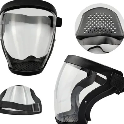 درحال که چشم ، دهان وبینی را می پوشاند ، ازآن دربرابر مواد شیمیایی و رنگ ها و خاک اره وپلیسه جلوگیری می کند.